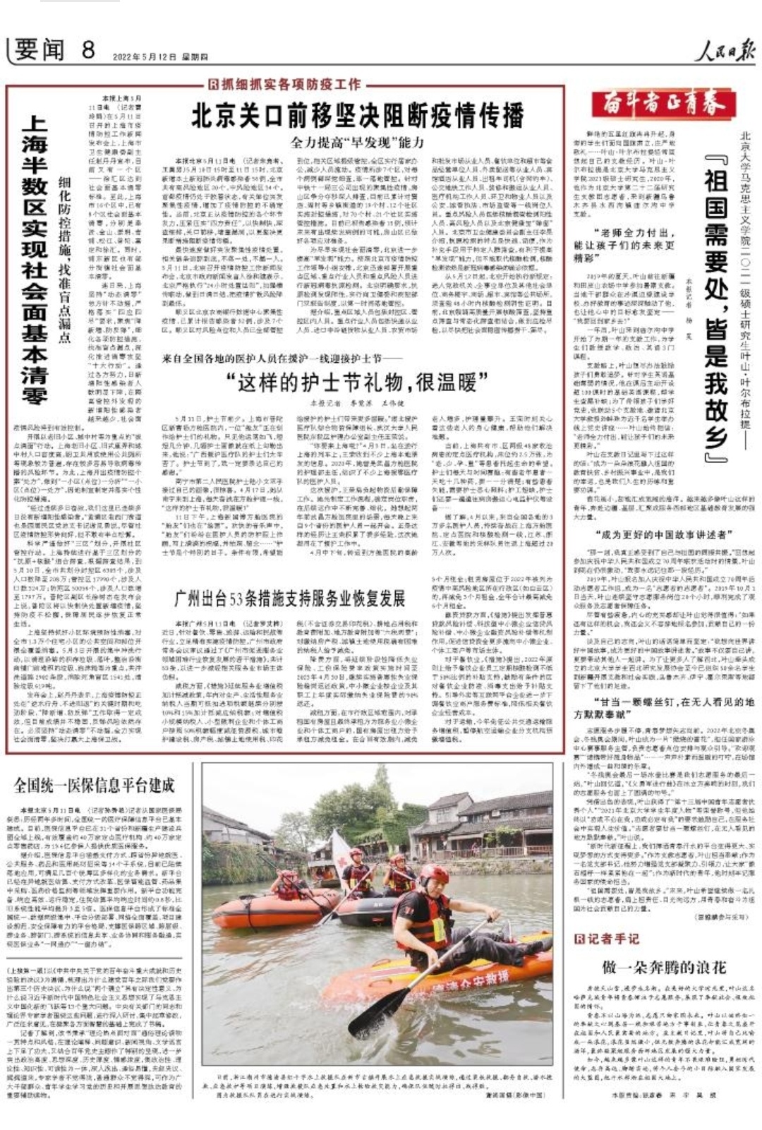“祖国需要处,皆是我故乡。”未来,叶山希望继续做一名扎根一线的志愿者,肩上担责任、目光向远方,用青春和奋斗为祖国为社会贡献自己的力量。(人民日报记者杨昊 雷雅麟参与采写)