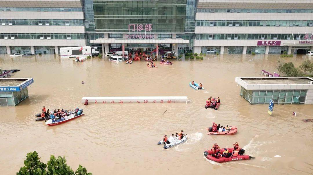 在地面和天空配合下,他们通过救援艇和直升机来对滞留病患、家属和医护人员进行转移。救援艇是转运医院里的普通患者到外面畅通的路面,再用车辆将他们转移到人民医院。对于一些危重症病患,需要八个救援人员抬一个人,确保患者身体不受太大的振动。空中的两架航空救援直升机循环作业,不断往返于医院20余公里外的河南省人民医院转移着重症患者。各方驰援人员互相配合,进行了一场生死时速的抢救。