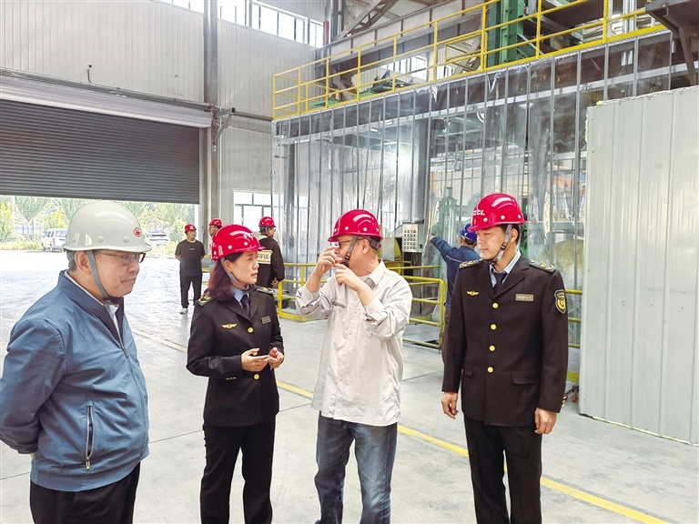 张雪梅(左二)带队对企业进行突发环境事件风险隐患排查。(图片由受访者提供)