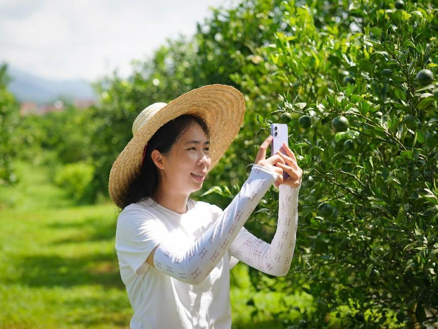 陈慧在检查贡柑的生产情况。张羲轮摄