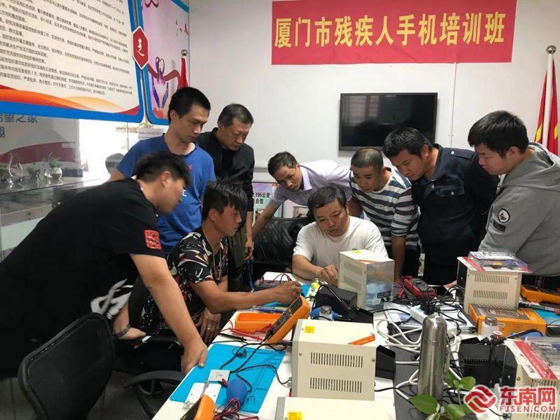 近年来,谢启明的志愿服务队从他独自一人发展到了一支队伍,为厦门1万多名群众提供免费维修手机及贴膜服务,实现了残疾人回馈社会的自身价值。