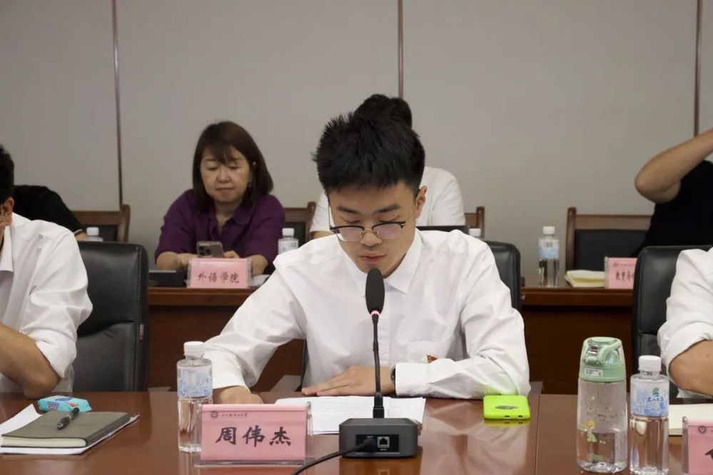 教育与心理科学学院周伟杰作为报名参加2025届西部计划志愿者代表发言,讲述了他立志投身西部幼教事业,计划在支教中做好文化传承、科学保教和教育扶贫工作,以教育家精神为指引,为西部学前教育贡献力量。