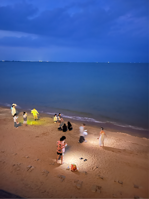 似乎吹走了白日的湿热,令人十分舒爽。脱下鞋子,踩入海水中,一